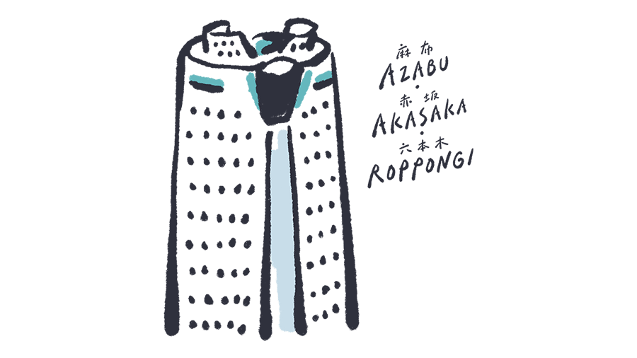 麻布・赤坂は江戸時代には武家屋敷や寺院が集まる地域でした。安政6年(1859年)に、最初のアメリカ大使館が麻布山善福寺に置かれ、公使のタウンゼント・ハリスらが駐在。現在でも多くの大使館が集まっていますが、それは幕末に外国人の滞在施設としてこの付近の寺院を利用したためです。六本木は明治期になると軍事施設が置かれるようになり、戦後にGHQが置かれたのもここ。現在も各国の大使館員が多く暮らす、インターナショナルな街です。