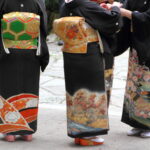 未婚女性の第一礼装となる長い袖が特徴の華やかな着物。柄は、肩から胸、袖、腰、裾に。模様がすべてつながる絵羽(えば)模様が入っていて、成人式や花嫁衣装、結婚式の参列など、おめでたい場にふさわしい。袖丈の長さで格式が変わり、三尺から三尺三寸(約90〜100センチ)のくるぶしまである大振袖は、いちばん格が高いとされている。長い袖を振ることが厄払いや清めの儀式に通じることから、ハレの日に身を清めるという意味を持つようになった。
