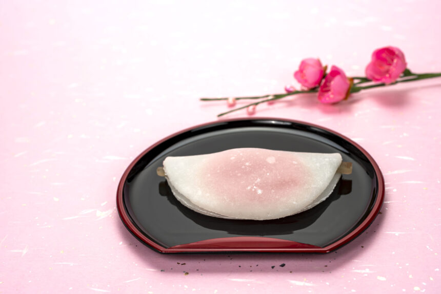 正月に食べる半円型のもち菓子。丸くのした白い求肥の内側に、菱形のピンク色の薄いもちと白味噌あん、甘く煮たゴボウを包んで作る。菱葩もち(ひしはなびらもち)とも呼ばれる。この由来は、平安時代の宮中の儀式「歯固め」から。新年に長寿を願い、押鮎(新年の祝いに用いた塩漬けの鮎)や味噌をもちで包んだ「宮中雑煮」を食べる習わしがあり、これが後に菓子となって宮中で食べられるようになった。ゴボウは押し鮎の代わりで、菱形なのは正月のもちの形の名残。明治時代になると、裏千家が初釜の菓子として出すようになり、全国の和菓子屋に広まったとされる。
