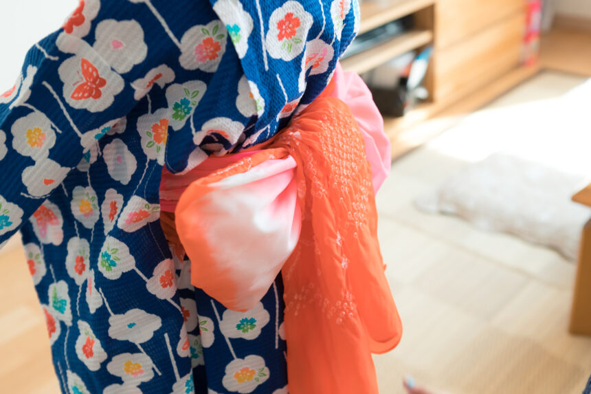 男性や子ども用のカジュアルな用途の帯。やわらかな素材の幅の広い帯で結びやすい。発祥は江戸時代の薩摩藩(今の鹿児島県)。同藩では、兵児と呼ばれる青年藩士(15歳以上25歳以下)たちが使っていたしごき帯を「兵児帯」と呼んでいた。その帯が明治維新で東京、そして全国へと広がっていった。兵児帯の特徴は、締め付けがなく、多様な結び方ができるところ。最近では、その特徴から女性が浴衣の帯としても使うようになり、素材やデザインが格段に増えている。