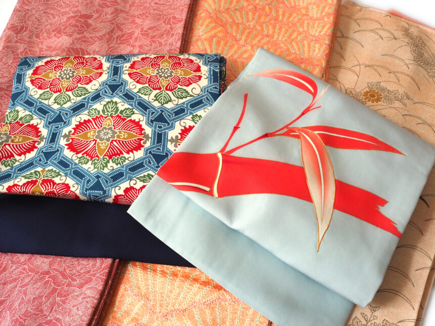 袋帯をより簡略化した帯で、カジュアルなおしゃれ着の着物と合わせるのにふさわしい。その歴史は諸説あるが、大正時代に名古屋で発案され、それが全国に広がったとされている。帯の幅は九寸(約34cm)か八寸(約30cm)で、基本的に手先からお太鼓になる部分までをあらかじめ半分に折って、胴に巻く部分を最初から半幅に仕立てている。長さは3.6m前後で、お太鼓部分は1枚の生地になる。金糸・銀糸を使った名古屋帯は、セミフォーマルに使うことができる。