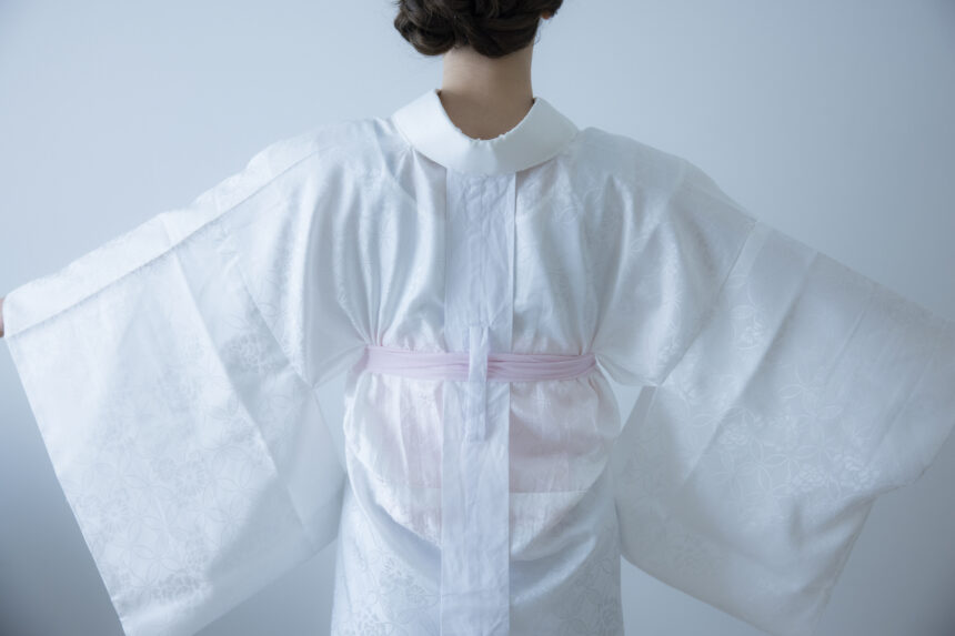着物用の肌着のこと。汗や埃がついて着物が汚れることを防ぐ役割がある。「肌襦袢(はだじゅばん)」、「長襦袢(ながじゅばん)」、「半襦袢(はんじゅばん)」の三種類がある。肌襦袢は、いちばん下につける上半身だけのもので、汗などを吸収しやすいように白の綿素材で作られている。長襦袢は肌襦袢の上に着る着物に似た形の肌着で、半衿を付けると着物を重ねてきているような効果を出せる。袖や裾から少し見えることもあるので、色や柄にこだわるとより着物の面白さが味わえる。半襦袢は、肌襦袢に半衿が付いているもので、丈が短いので裾除けと一緒に付けるのが一般的。半襦袢をつけたときには、長襦袢は着用しない。