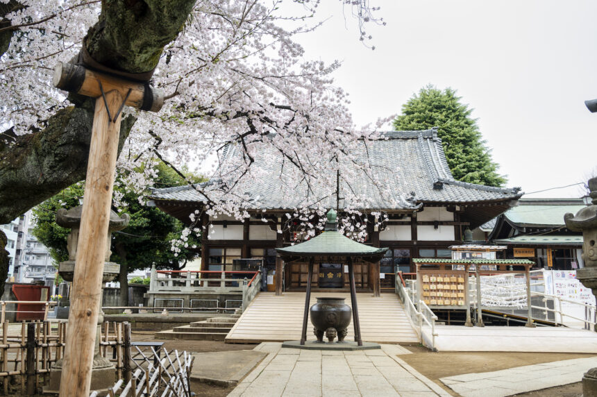 1982年に新東京百景に選出された中野区の寺院で、駅名にもなっている名刹。徳川秀忠の第五子和子が梅照院のご本尊の薬師如来に眼の病気が治るように祈願したところ、快癒したところから今でも「治眼薬師」として信仰されています。また、毎月8のつく日は薬師如来のご縁日です。桜の時期やお正月は多くの参拝者や出店が並び境内が賑わっています。