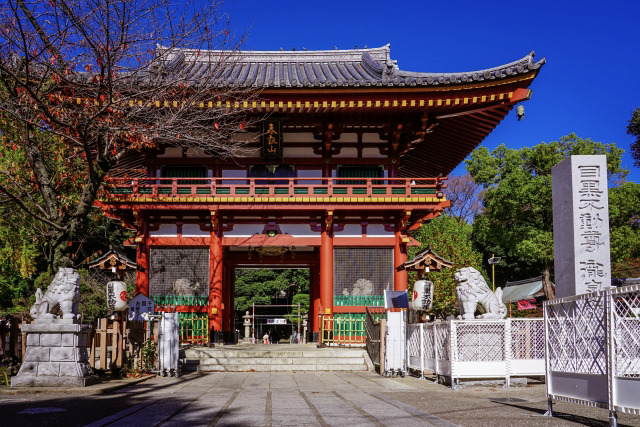 808(大同3)年に慈覚大師円仁が開創した関東最古の不動霊場で、日本三大不動のひとつに指定されています。御本尊の不動明王は12年に一度の酉年に開帳される貴重な秘仏。境内には立派な滝があり、開山以来枯れずに流れているといわれています。毎月28日の不動縁日にはたくさんの露店が並び、にぎやかな雰囲気を堪能できます。また、諸説ありますが、「目黒」の地名はこの目黒不動尊に由来するともいわれています。