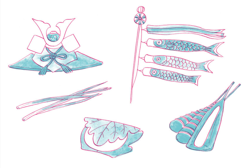 Children’s Day (national holiday; May 5th)bathwater with iris petalscake wrapped in bamboo leavesBoys’ May Festival dollsbaby’s first annual festivalrice cakes wrapped in oak leavesBoy’s Day celebration (May 5th)carp streamerMay 5