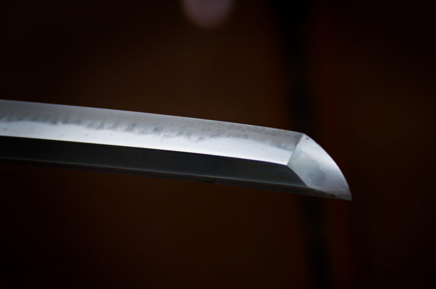 The most advanced point of the sword blade. Shinogi-suji. The part of the blade above the mitsutogashira, where shinogi-suji (a raised line running vertically down the side of the blade) and yokote-suji (a horizontal line running from shinogi-suji to the blade edge) intersect. The part of the blade above the mitsutogashira, where Shinogi-suji and Yokotesuji intersect (the horizontal boundary line running from Shinogi-suji to the blade edge). It is also called “spearhead. It is one of the most beautiful parts of a Japanese sword, and is also valued from an artistic point of view.