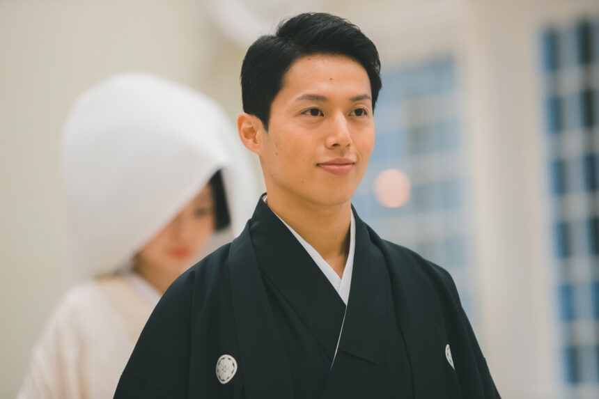 clothing (e.g. kimono) decorated with one’s family crest(montsuki)