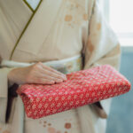 Pattern dyeing was popular from the Muromachi period (1333-1573) to the early Edo period (1603-1868). The pattern is expressed based on seijime-shibori (a method of dyeing by tightening and squeezing a thread sewn with a picture or design. The pattern is expressed based on the seijime shibori (a method of dyeing by tightening and squeezing a sewn thread of a picture or design, leaving the squeezed part dyed white to form a pattern). The artist added ink, vermilion, gofun (white paint made from powdered shells of clams, oysters, etc.), foil, embroidery, and other techniques to the base. The motifs of withering flowers and leaves were used to express not only splendor but also beauty, and the technique came to be used in the camp coats of warriors. Although this dyeing technique is older than yuzen-dyeing, it is said to be “phantom dyeing” because there are few references to it and it suddenly stopped being produced around the beginning of the 17th century. The technique was revived at the end of the Showa period (1926-1989), and today it is a prestigious dyeing technique used for furisode (formal kimono) and visiting kimono.