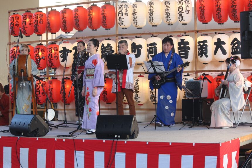 The “Sumida Kinshicho Kawachi Ondo Grand Bon Dance” is different from the usual Bon Odori dance around the yagura. Dancers dance freely to loud music played from a stage decorated with red lanterns in Tatekawa Water Park, located under the elevated Metropolitan Expressway No. 7 Komatsugawa Line. The song that attracts the most dancers is “Kinshicho Mambo. This is a dance that allows the dancers to move their bodies to the fullest. Although there is only one venue, it becomes so crowded that there is no room to dance. It is not a Bon Odori dance, but a music festival. This year, the festival will be held for the first time in three years, but on a smaller scale, with advance reservations required, and instead of live music, the dancing will be accompanied by a performance video of Kawachi Ondo, created especially for this occasion, using a large LED vision screen. There will also be a kitchen car area that does not require reservations.