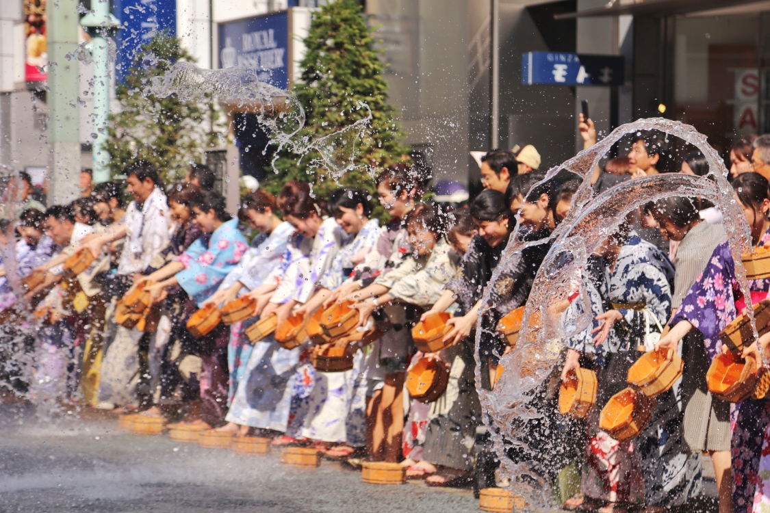 Gather in yukata at Ginza! Experience unique summer events such as Uchimizu (sprinkling water) and “Kirie de Hanabi” (fireworks with paper cutouts)!