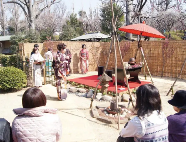 まつり期間中の土・日・祝日には、2月10日の開会セレモニーをはじめ、実行委員会による売店、抹茶野点・茶席、餅つき、箏曲演奏、和太鼓演奏、模擬店、植木・園芸市(平日も一部出店)、川場村物産展、模擬店横催し物などが開催されます。