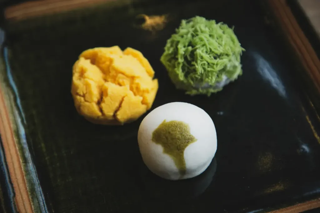 “Kimisigure” melts softly the moment it touches your tongue, with gentle sweetness and richness from egg yolk. “Wakakusa” combines smooth koshi-anko with chewy gyuhi, blending beautifully with a faint aroma of yuzu. “Oribe Manju” uses yam dough colored to resemble the glaze of Oribe-yaki pottery, favored by the tea master Furuta Oribe in the Momoyama period.