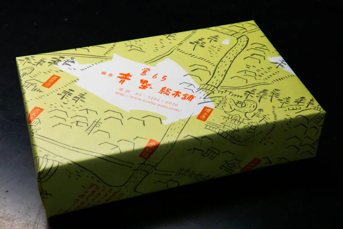 Founded in Ansei 3 (1856) as a wagashi shop in Azabu Ichibee-cho (around today’s Roppongi-Itchome Station).The shop supplied wagashi to nearby daimyo residences and temples and shrines.The current wrapping paper features an old map design, offering a glimpse of the area at the time of founding.The shop moved to its current location in Meiji 20 (1887).