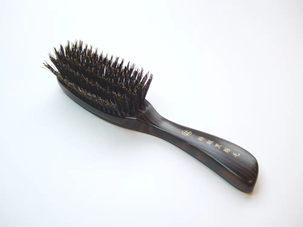 A hairbrush planted with firm, stiff boar bristles.By intentionally offsetting the bristles to uneven lengths, it achieves outstanding glide through the hair.Many people wonder if it might be too hard when they touch it to their palm, but when actually used, it feels perfect on the scalp and wonderfully pleasant.Natural oils spread through the hair for a glossy finish.