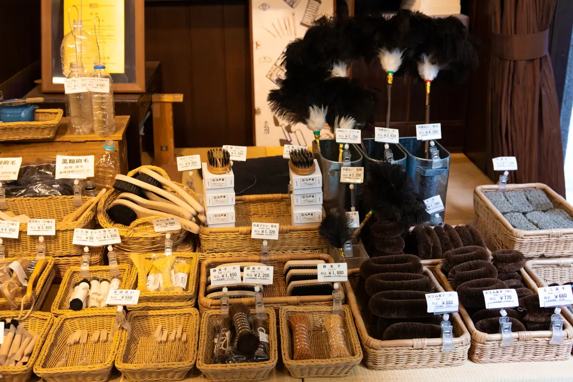 Opening the sliding door that makes a pleasant clicking sound reveals a thoroughly swept interior lined with brushes and brooms from large to small.Toothbrushes, shoe brushes, clothing brushes, hairbrushes, makeup brushes, and kitchen items such as dusters and brooms.It makes you realize that although we rarely think about it, brushes and brooms play a major role in our everyday lives.