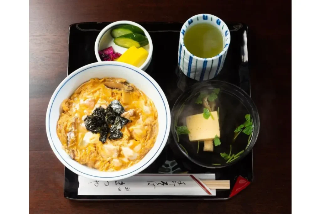 Chicken, bamboo shoots, dried shiitake mushrooms, and onions are simmered in soba sauce and bound with egg. Using both breast and thigh meat gives a mix of textures, which is the secret to its deliciousness.