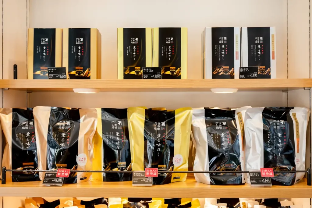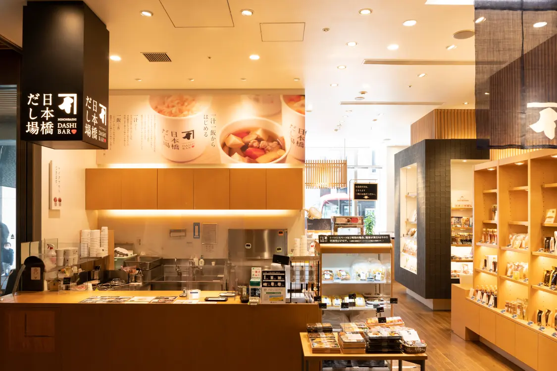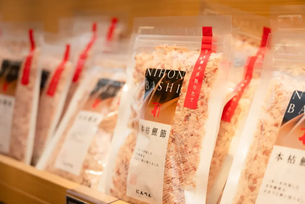 While staying true to its core of bonito flakes, Ninben continues creating new products that reflect the times.At the “Ninben Nihonbashi Main Store” located in “COREDO Muromachi 1” (Tokyo, Nihonbashi), you’ll find more than 400 unique products lined up.The store also includes the “Nihonbashi Kezuriba,” where bonito flakes are shaved and sold on-site, and the standing bar “Nihonbashi Dashiba,” serving bonito broth with a “one soup, one rice” concept.