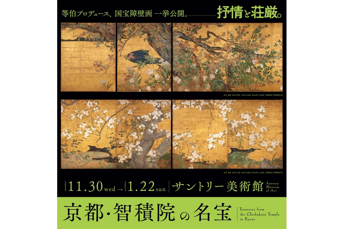 智積院が所蔵する寺宝を展示します。必見の作品は、狩野永徳と並ぶ桃山時代の巨匠・長谷川等伯率いる一門によって、豊臣秀吉の子・鶴松の菩提寺である祥雲禅寺に描かれた金碧障壁画群。国宝である長谷川久蔵の『桜図』、長谷川等伯の『楓図』『松に秋草図』を揃って展示するのは、今回が初めて。