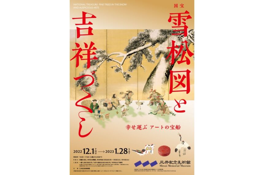三井記念美術館のコレクションを代表する国宝『雪松図屏風』。本作品を中心に、長寿や子孫繁栄、富貴といった人々の願いを託したモチーフがテーマの企画展。さまざまなジャンルの作品展示を通じて、“願い”がどのように美術作品へ取り入れられたのかを伝えます。