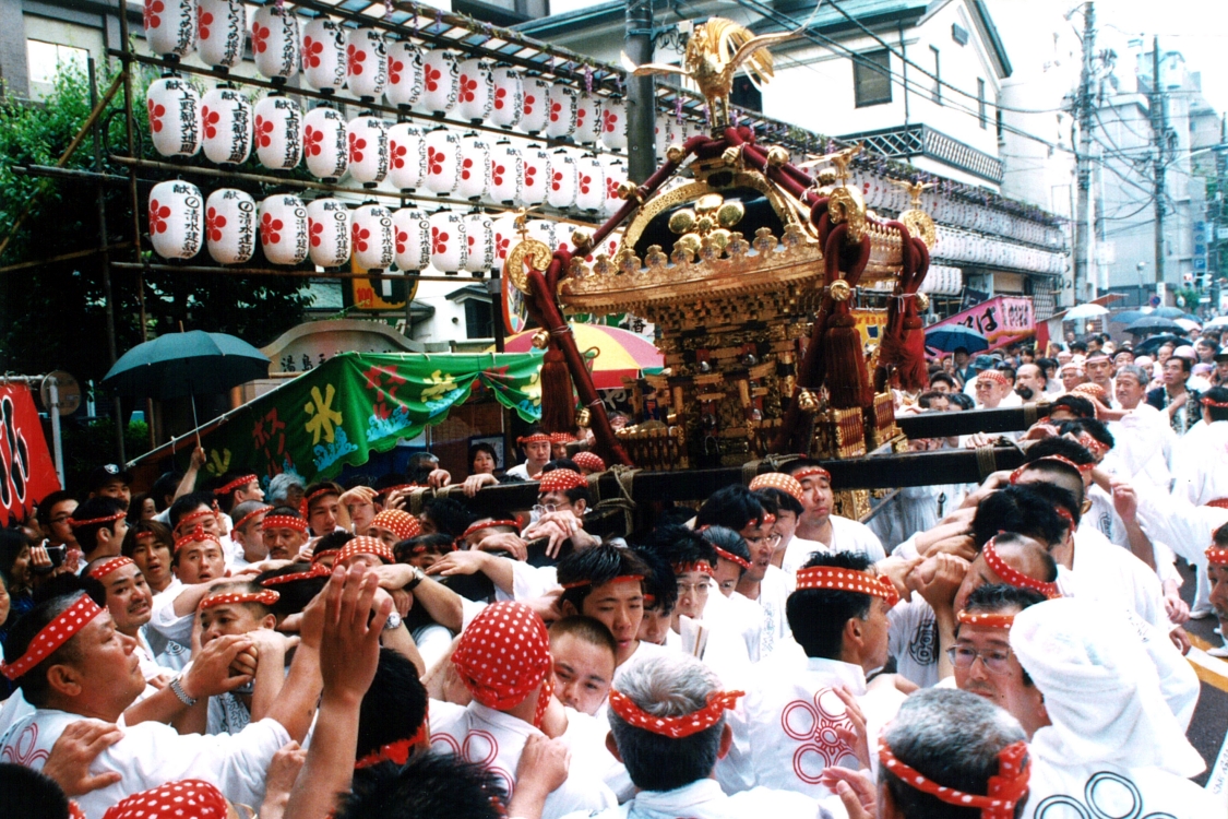 毎年5月25日に祭典が行われ、その週の土曜日には本宮神輿渡御が開催。神社正面鳥居から三組坂上まで、片道約300メートルを往復します。