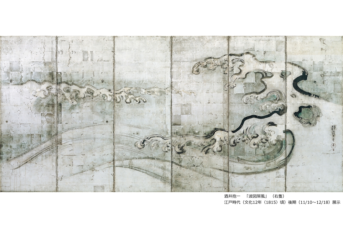 必見の作品は、俵屋宗達筆の国宝 「源氏物語関屋や澪標 図屏風」(前期)と、酒井抱一筆の「波図屏風」(後期)。前期には、気品漂う「宋~元」時代の、後期には明るく清らかな「明~清」時代の絵画と工芸品を公開します。
