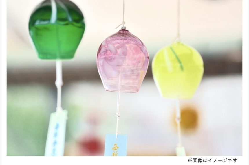 風鈴の販売コーナーには、陶器や工芸ガラスなどの素材を使った風鈴が並びます。茨城県の笠間焼風鈴、愛知県の瀬戸風鈴など陶器が使われた風鈴のほかに、青森県の津軽びいどろ風鈴や石川県の能登島ガラス風鈴など工芸ガラスが使われたものなど、見本市さながらのラインナップに目を奪われることでしょう。