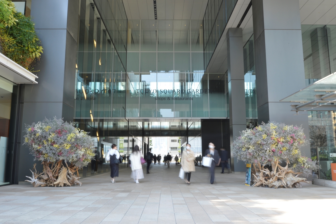 約1カ月間、八重洲・日本橋・京橋エリアで開催。京橋エドグランで桜装飾&ワークショップ、東京スクエアガーデンやICCHO日本橋のレストランなどで桜のメニューを提供するほか、商業施設を中心に花にまつわる様々なイベントが行われます。東京スクエアガーデンでは、現代華道家の大薗彩芳さんによるいけばな作品や、東京建物八重洲ビルと東京建物日本橋ビルでは、フラワーアーティストの相壁琢人さんによるフラワーオブジェで華やかな雰囲気を演出します。