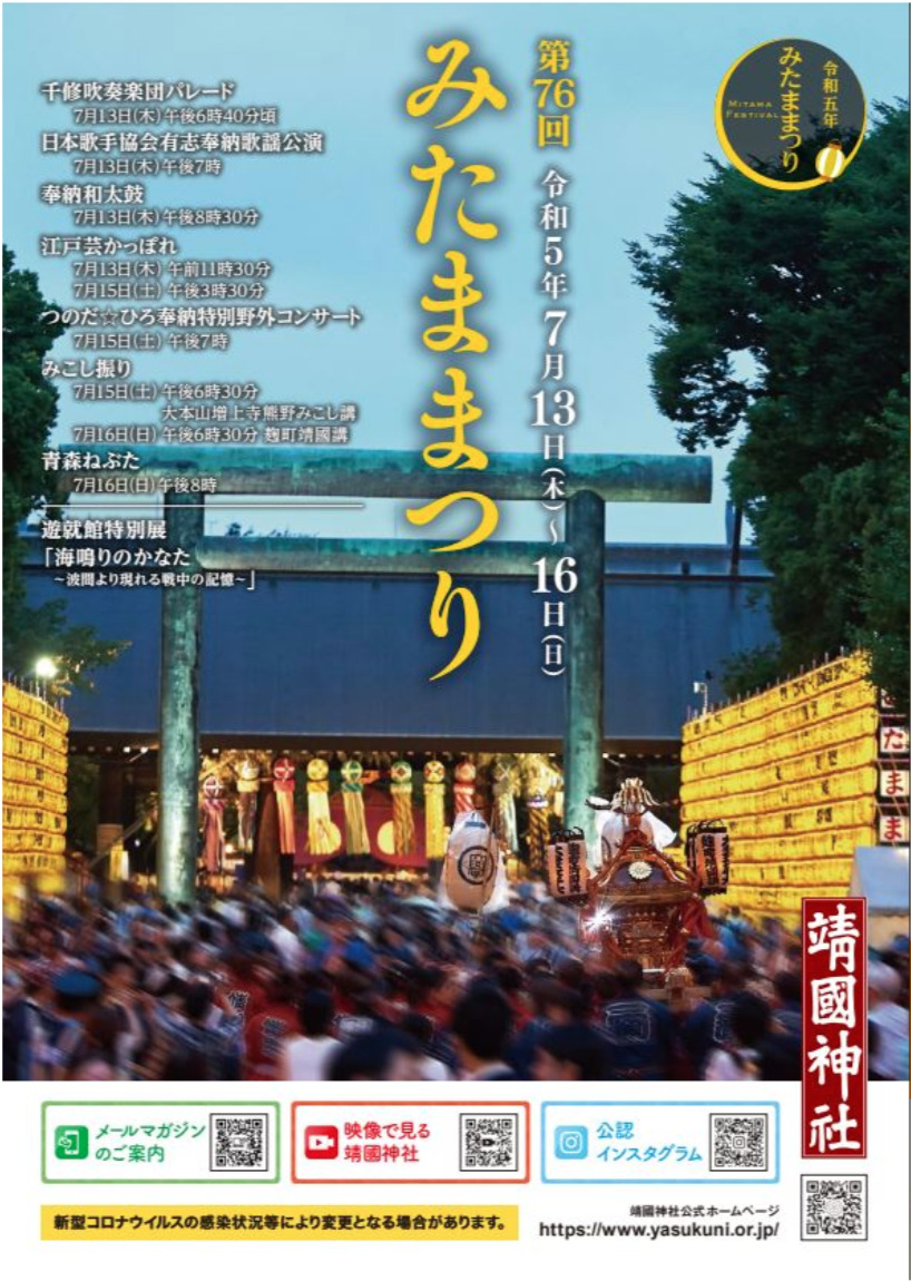 | 開催場所 | 靖國神社 外苑・内苑(東京都千代田区九段北3-1-1) |