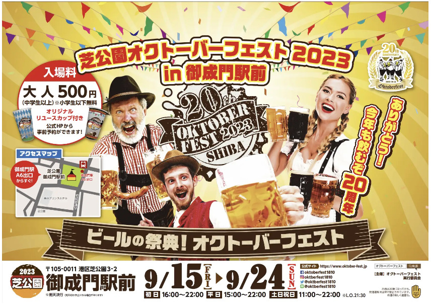 ドイツビールの祭典オクトーバーフェストが、今年も都立芝公園御成門駅前で開催!