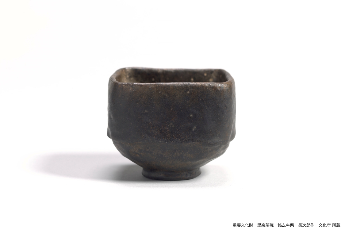 中でも必見は文化庁が所蔵している、「黒楽茶碗 銘ムキ栗」。安土桃山時代を代表する京都の陶工・長次郎が初期に制作したもので、桃山時代の茶道具の在り方を示す茶道文化史上極めて貴重な作品です。