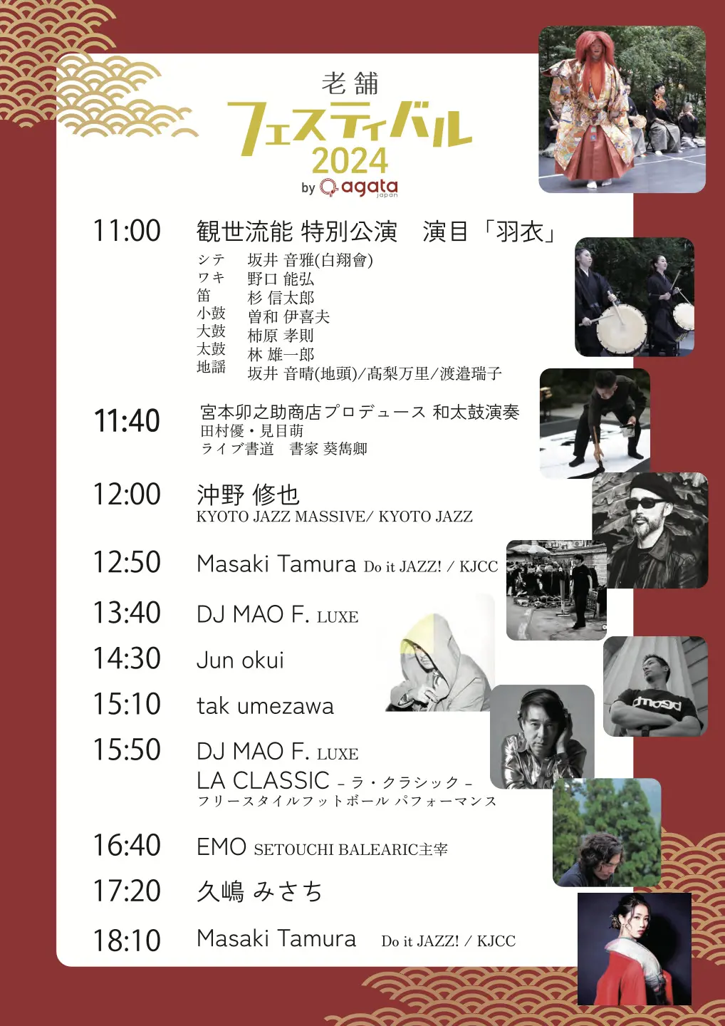 能公演をはじめとする伝統芸能やDJライブ、老舗の逸品のお買い物など、伝統と現代のよいものを満喫できるイベントです。今年は今年は日本のお酒(日本酒・日本産用酒)の飲み比べも充実。