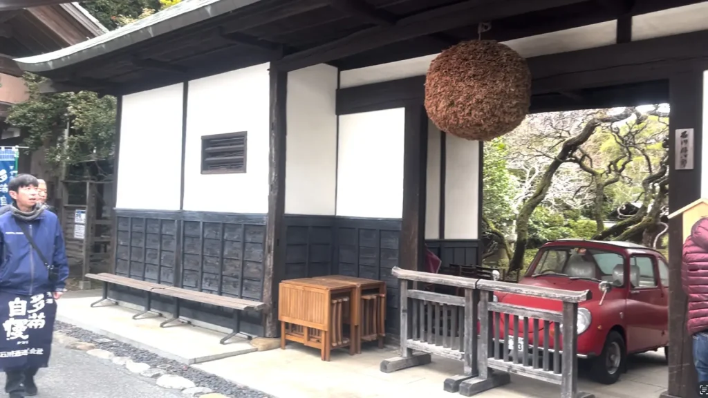 バスを降り、壁に沿って歩くと、趣ある入り口が見えてきました。