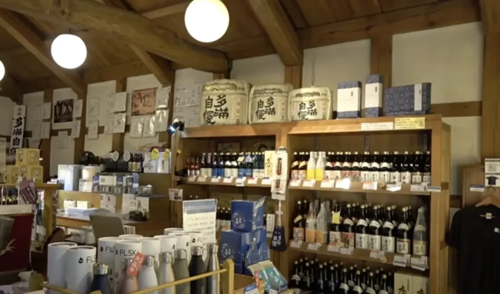 敷地内のいくつかの国登録有形文化財の説明を受けた後は、直売店「酒世羅(さけせら)」でお買い物タイム。日本酒の代表銘柄「多満自慢」やペールエール「多摩の恵」をはじめ、多数のお酒や食品、グッズが並んでいました。