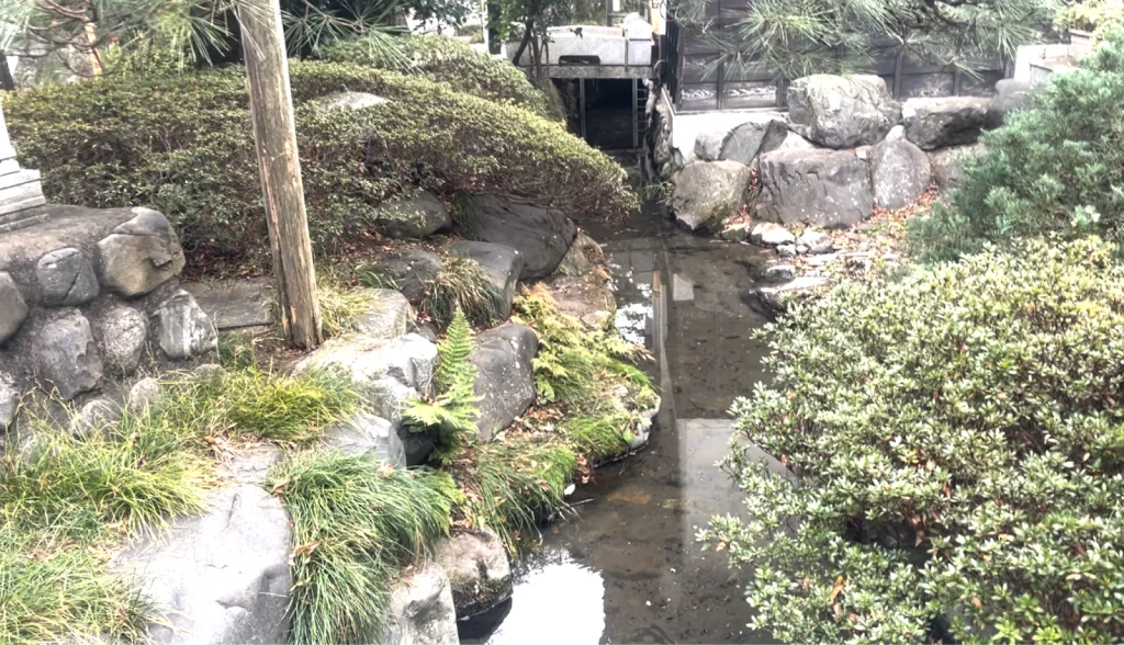 本蔵を出てすぐにあるのは、玉川上水熊川分水の流れと、樹齢400年を超える2本の夫婦欅。