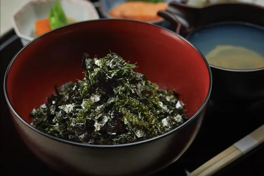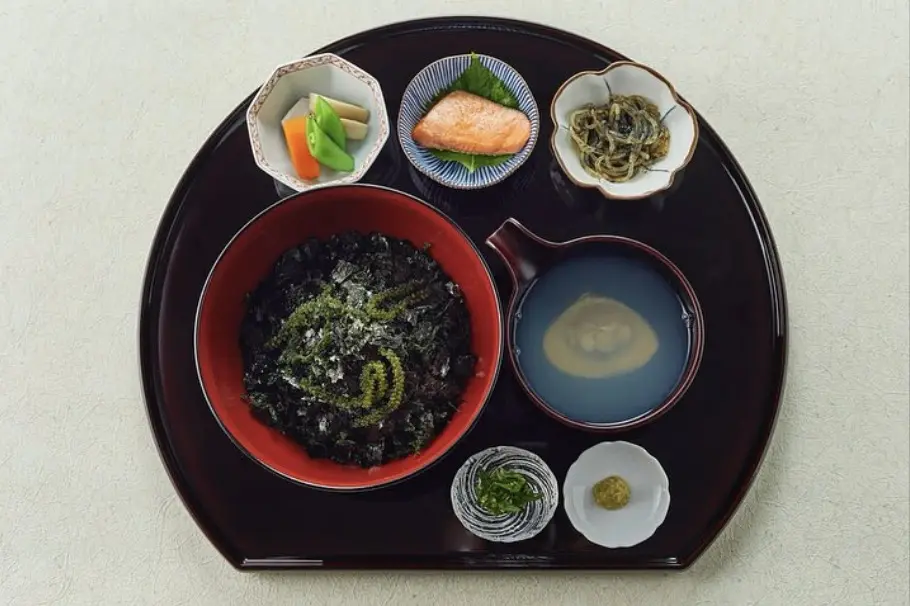 山本山の最高級海苔「にほんばし」とバラ干し海苔に、海苔の風味をさらに引き立てる国産はまぐりの出汁が決め手の出汁茶漬け。季節ごとに変わる3種の副菜と、2種の薬味と共に提供しますワンランク上の極上茶漬けをお楽しみください。