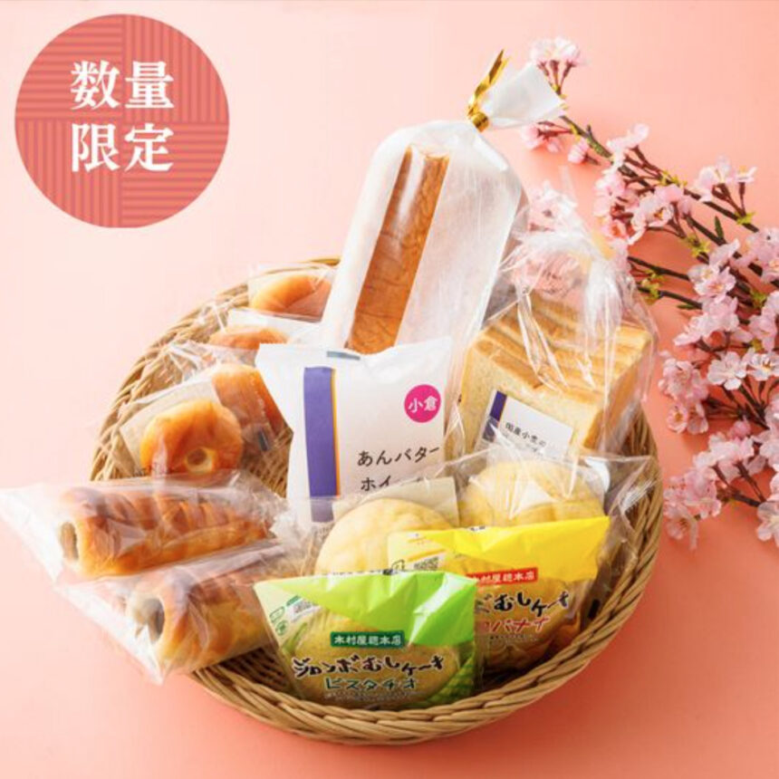 酒種桜、酒種小倉、酒種桜づつみ、酒種屋久島たんかん、チョココロネ×2、あんバターホイップ、メロンパン×2、北海道産あずきの甘納豆パン、ゴールドブレッド、ジャンボむしケーキピスタチオ、ジャンボむしケーキ完熟バナナ