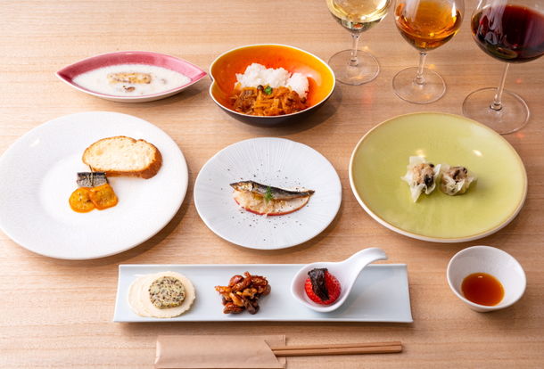 佃煮を使用した8品の料理にワイン3杯(白・オレンジ・赤)がペアリングされています。創業より240年以上受け継がれてきた秘伝のタレが作り出す佃煮のコク・旨味とのマリアージュを堪能できます。
