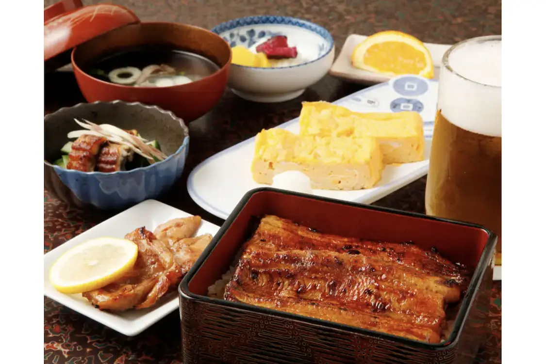 看板メニューである鰻重は、特上(4,700円)、松(3,900円)、竹(3,100円)、梅(2,700円)の4種類。きも吸いもついています。また、鰻重「松」と、鳥やきや玉子焼き、鰻の煮こごりなどがついたコースもあり(愛宕コース7,800円)。ランチ限定のお手頃なうな丼も人気です。