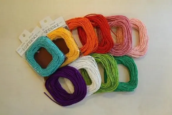 飾り結びに最適な紐。ポリエステル素材で色落ちの心配がなく、高級感のある風合いが特徴。豊富なカラー展開で、カーテンのタッセルや巾着の紐などにも応用できます。