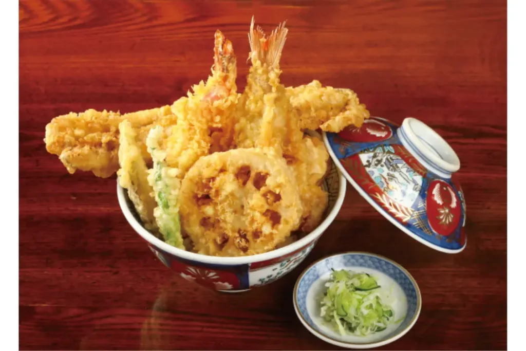 まず注目したいのは店の佇まい。関東大震災後の昭和2年(1927年)に建て替えて以降、現在までその姿を変えず残る歴史的建造物は平成22年(2010年)に登録有形文化財に認定されたもの。そんな歴史を重ねた店内でいただけるのは、何より鮮度にこだわった天麩羅。特に穴子は店外に“穴子専用”の水槽を設け、朝〆したものを徹底して提供しています。創業以来変わらない技術でサクッとした食感に仕上がる天麩羅と、継ぎ足しで作る濃い口のタレ、店主が天丼向けに厳選したお米「宮城のヒトメボレ」、これらを合わせた昔ながらの天丼は一見一食の価値があります。