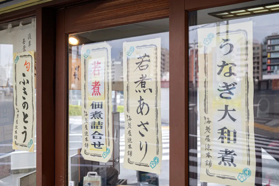 浅草から東京スカイツリーを目指して吾妻橋を渡ると、海老屋總本舗が見えてきます。朝9時の開店と同時に、詰め合わせを求める地元の方が続々と来店。浅草で長年愛されてきた歴史を感じさせます。