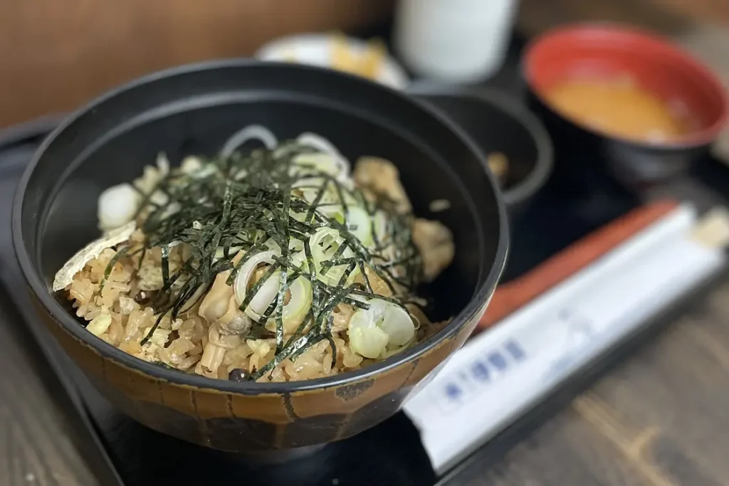 お食事処で楽しめる郷土料理の「深川あさりめし」。売店にはお弁当やおにぎりもあるので、街歩きの休憩にぜひ。