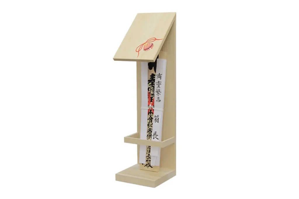 寺社のお札を立てられるシンプルで厳かな総桐製のお札立て。鈴の絵柄で優しげな印象に。棚などに置くのはもちろん、壁にもかけられるため、狭いスペースでも飾ることができます。