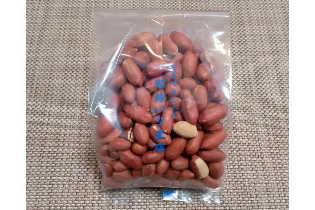 石井いり豆店で一番人気の商品。千葉県八街市産の「千葉半立落花生」を使用しており、袋を開けた瞬間から芳ばしい香りが感じられます。噛むほどに味わえる旨味と濃い甘さも魅力です。