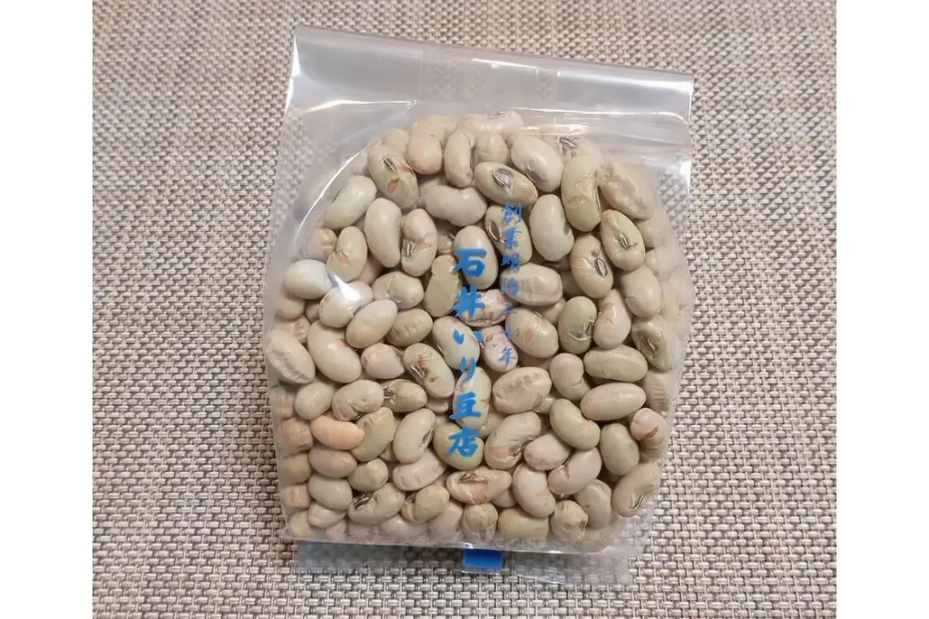 北海道産の「袖振大豆」を一晩水につけてから1時間30分ほど煎り上げた商品。落花生よりもすっきりとした甘味が魅力です。