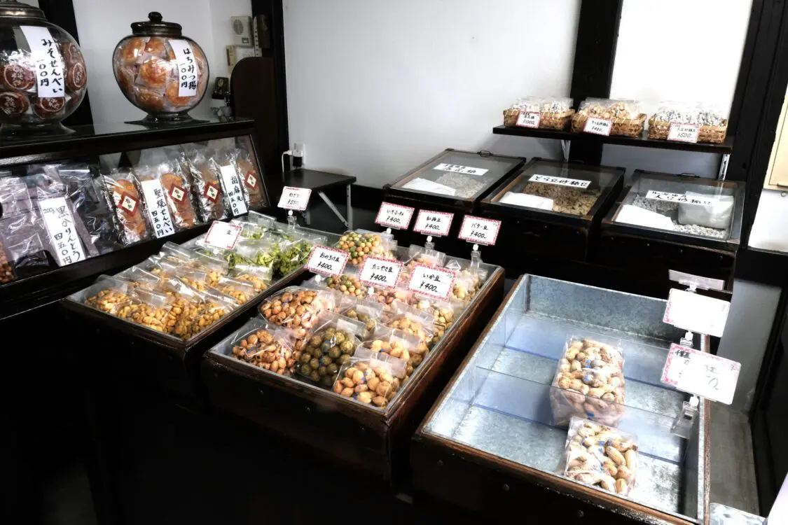 一番人気は創業時から変わらないシンプルな製法で作られた落花生。他にもそら豆にカレー粉をまぶしたカレー豆やわさび風味を加えたわさび豆、バター風味の豆菓子などアレンジがきいた約30種の味が、リーズナブルな価格で楽しめます。お酒のおつまみにも子どものおやつにもおすすめです。
