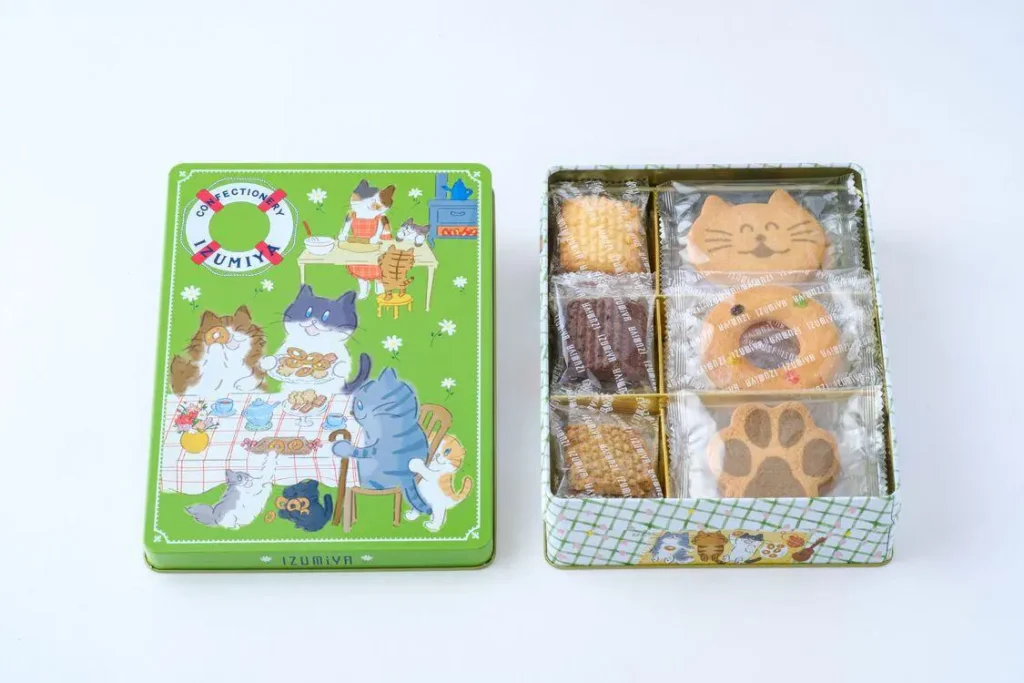 イラストレーター・セツサチアキさんがパッケージデザインを手がけた大人気商品。6種類のクッキーとかわいい猫がプリントされたクッキーの詰め合わせで、そのかわいさは食べるのがもったいないほど!