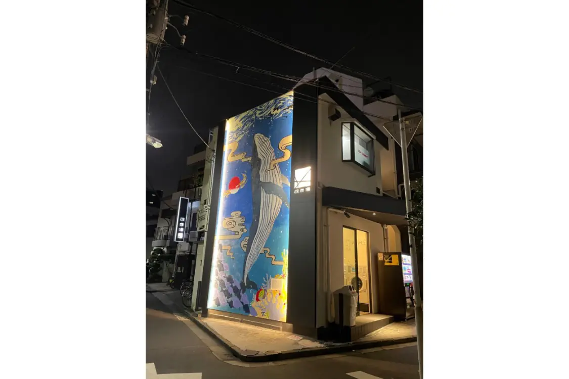 渋谷と恵比寿を結ぶ、明治通り沿いにある大正初期創業の老舗銭湯。2018年にリニューアルされ、外壁には大きなくじらのアートが描かれています。この壁画は、壁画師・emi tanaji氏に依頼したもので改良湯のシンボルとなっています。施設のコンセプトは「人や文化が交差する銭湯」。内装には現代的なデザインを取り入れ、サウナスペースも拡大、外気浴スペースも設置されました。