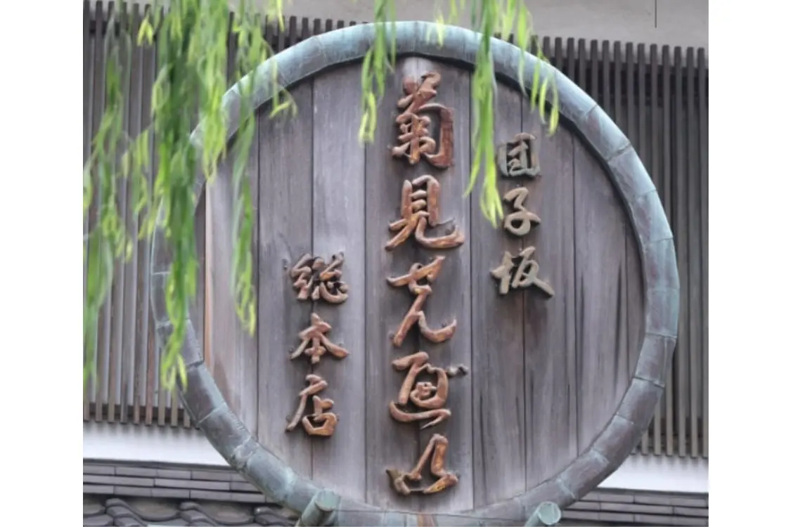 かつて江戸の将軍・徳川家康に仕えた武家や大名の屋敷が置かれ、いまも街並みに古き良き時代の風景が残る千駄木エリア。この地で明治8年(1875年)から店を開き、140年以上せんべいを販売し続けているのが「菊見せんべい総本店」です。団子坂下の柳通りに入ってすぐのところに見える、大きな丸い看板と木組みの間口が印象的。