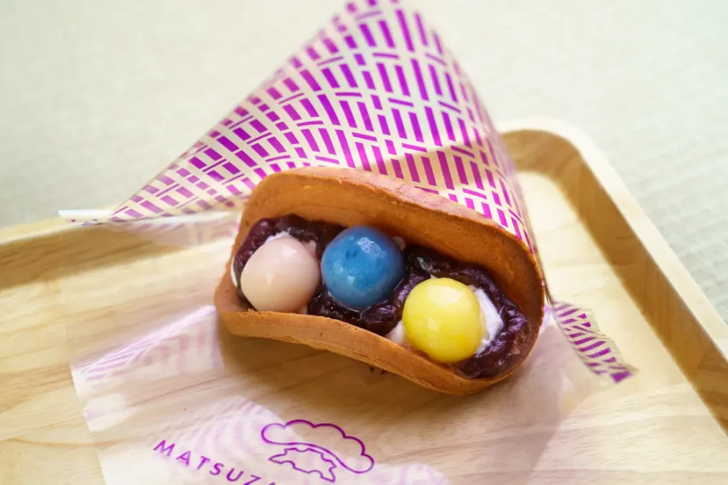 本店のみで販売している新名物が「松崎ろうる」。専用の配合で焼かれた瓦煎餅に、「ぎんざ空也 空いろ」の餡とクリームを挟んだフレッシュスイーツです。店内で販売しているコーヒーや焙じ茶と一緒にいただきましょう。季節ごとに売り出されるスペシャルな松崎ろうるも人気です。